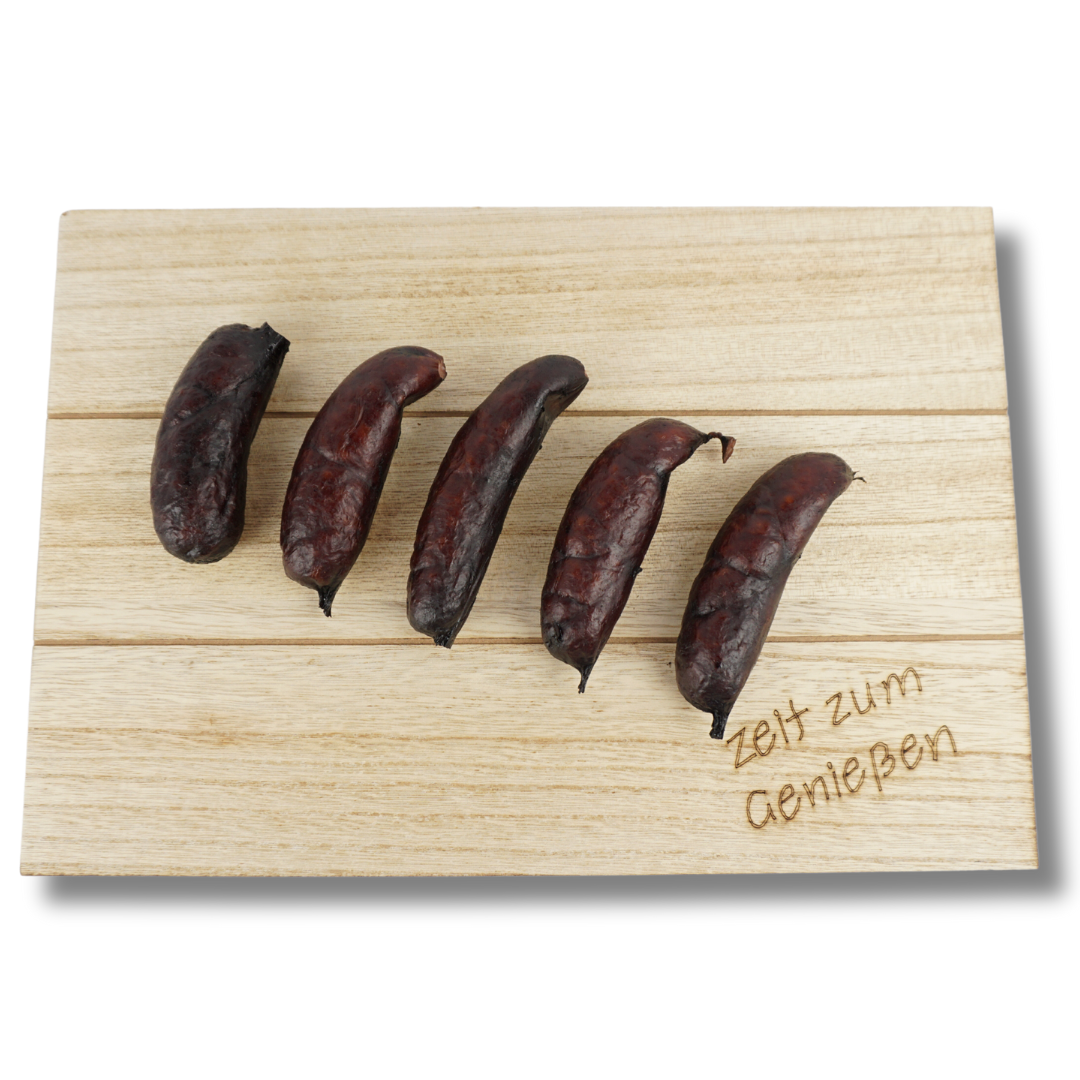 Entdecken Sie den einzigartigen Geschmack unserer schwarzgeräucherten Bratwürste, handgefertigt und verpackt von der Landmetzgerei Bühler. Diese Spezialität ist das Produkt unserer Leidenschaft für traditionelle Metzgerei und steht für die Qualität, die Sie von unseren Produkten erwarten können.