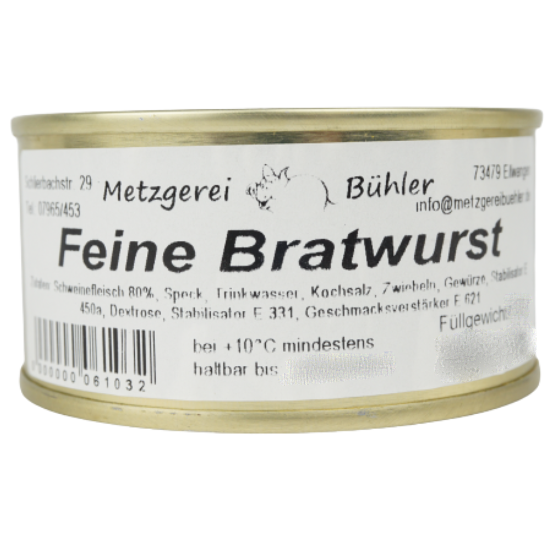 Entdecken Sie den herzhaften Genuss unserer Dosenwurst direkt aus der Landmetzgerei Bühler. Sorgfältig zubereitet nach Deutscher traditioneller Hausmacher Art, ist unsere Wurstkonserve ein echtes Stück Deutscher Metzgereitradition, liebevoll verpackt in jeder einzelnen Wurstdose.