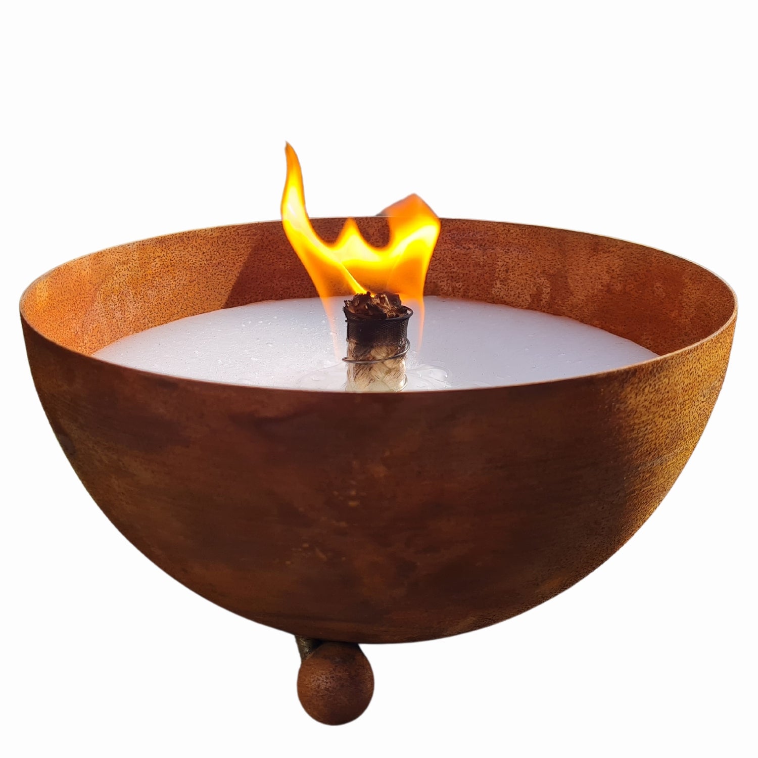 Als große Outdoor Kerze bietet sie nicht nur Licht und Wärme, sondern fungiert auch als außergewöhnliches Geburtstagsgeschenk für Frauen oder als Teil eines jeden festlichen Anlasses. Die natürliche Rostpatina verleiht der Metallschale einen unverwechselbaren Charakter, der mit der Zeit noch schöner wird.